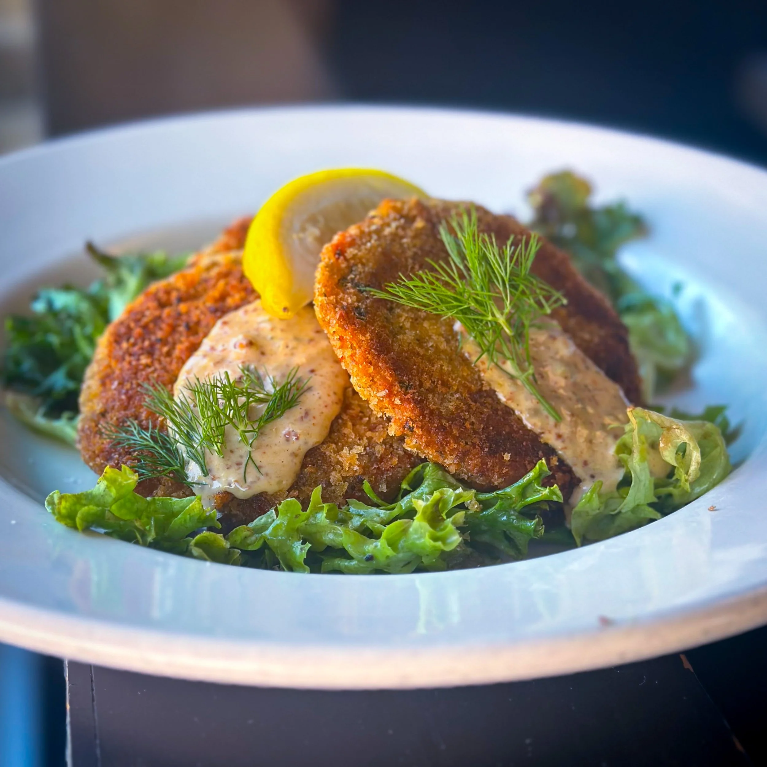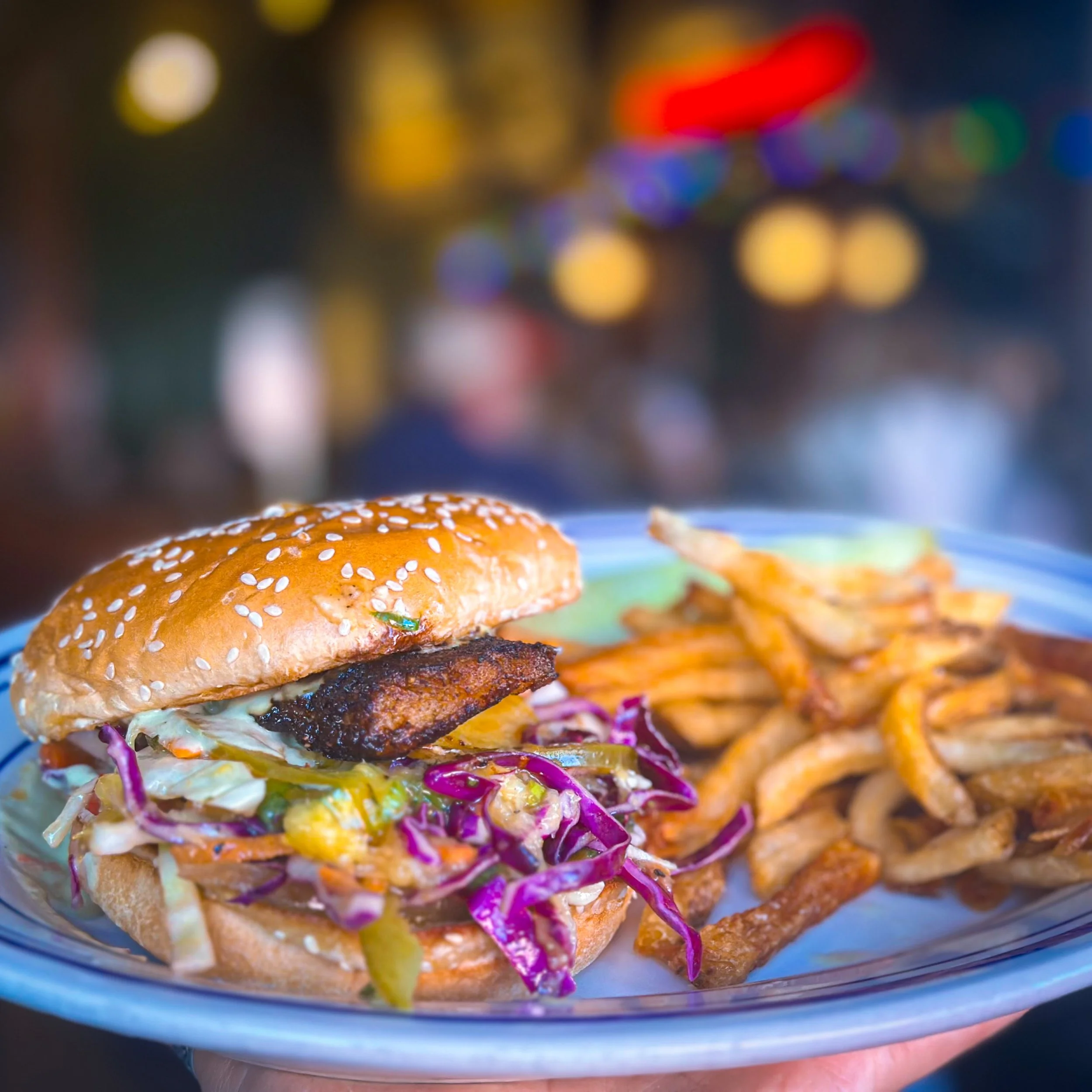 Chef Carson has done it again in their flexing their fancy pants entrée muscles. After updating the bring for our Vegan Fish Fry and creating last month’s entrée special, they’ve come up with a fresh, crispy, and delicious dish to compliment our fish-forward theme for the month of July! Available daily 3p - 9p ONLY!